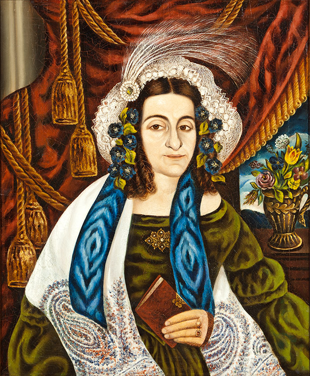 In stark contrast to Manolache Manu, his wife, Sultana Manu, née Mavrogheni, wears a typically Western dress, even if out of fashion. Together the two portraits are indicative of the limitations of Romanian intelligentsia as it struggled along the path to modernization.